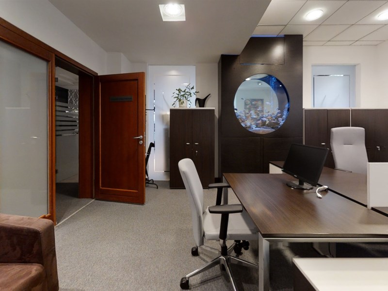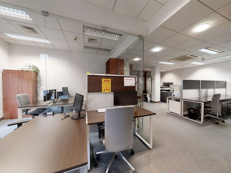 Lokal użytkowy położony na parterze budynku wielorodzinnego o powierzchni 522,5 m2. W obecnym układzie pomieszczeń lokal zapewnia wygodne stanowiska pracy dla ok. 40 osób. Wysokość pomieszczeń 2,60 - 2,80 m do sufitu podwieszanego i 3,18 m wysokość do stropu. 12 miejsc parkingowych w garażu podziemnym oraz dedykowane miejsca parkingowe naziemne. 2 tarasy o powierzchni 105 i 66 m2. 2 niezależne wejścia do lokalu. Nieodpłatne prawo do umieszczania oznakowania firmowego na elewacji budynku.