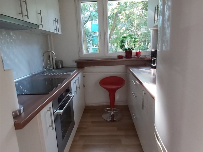 Kuchnia widna, wyposażona w nowe meble wykonane na wymiar, nowe sprzęty AGD.