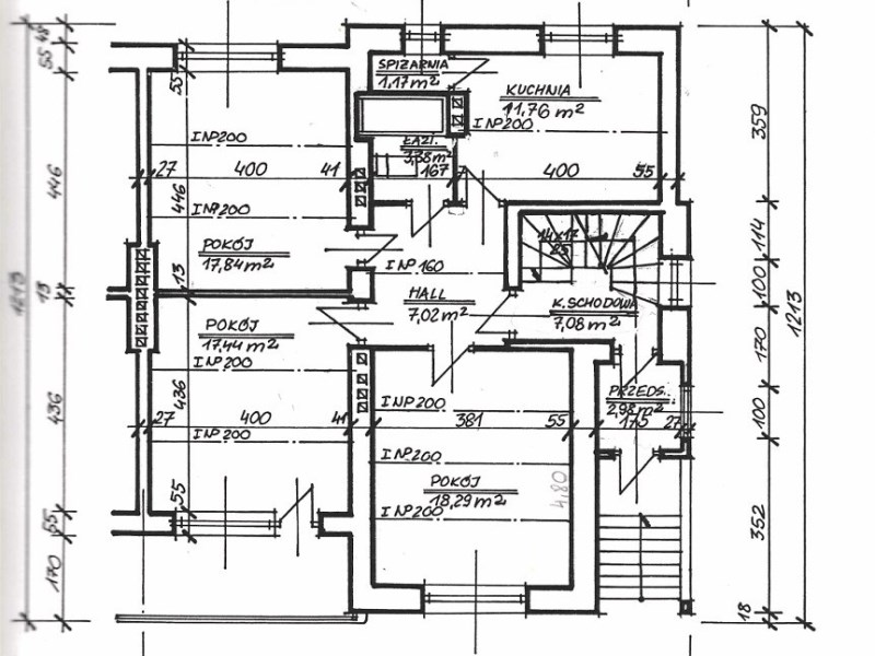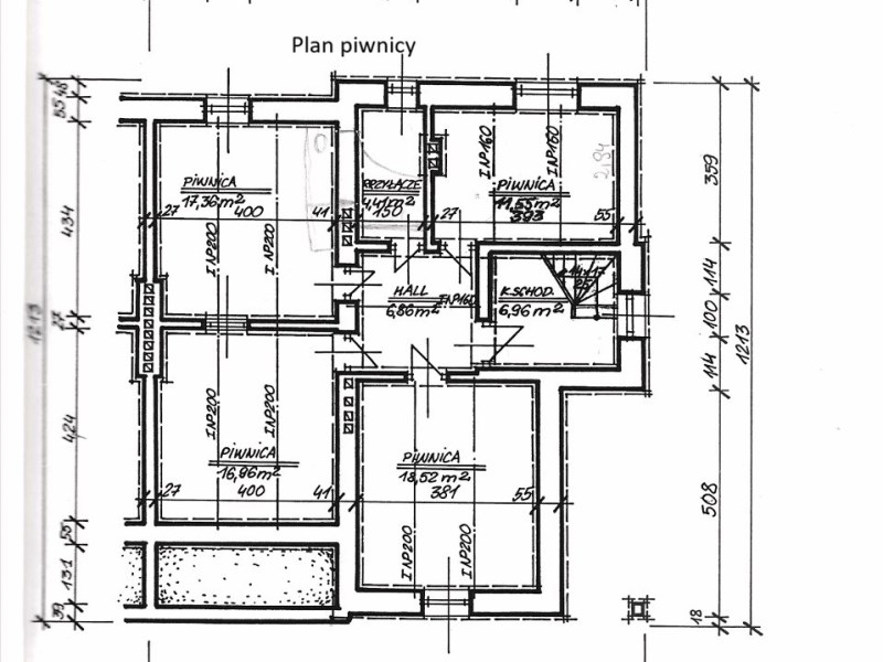 4 pomieszczenia i wymiarach 17, 36 m 2 11, 55 m 2, 16,96 m 2, 18, 52 m 2 4,41 m 2 6,86 m 2 klatka schodowa o pow. 6,96 m 2