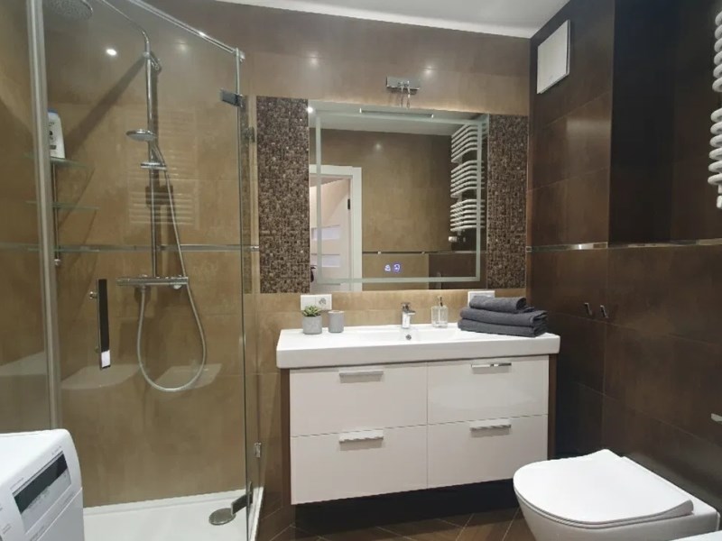 - 2 pełne łazienki z WC, jedna z prysznicem, druga z wanną,