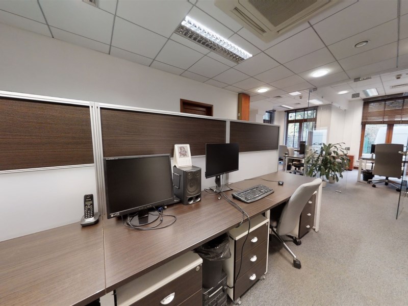 Lokal użytkowy położony na parterze budynku wielorodzinnego o powierzchni 522,5 m2. W obecnym układzie pomieszczeń lokal zapewnia wygodne stanowiska pracy dla ok. 40 osób. Wysokość pomieszczeń 2,60 - 2,80 m do sufitu podwieszanego i 3,18 m wysokość do stropu. 12 miejsc parkingowych w garażu podziemnym oraz dedykowane miejsca parkingowe naziemne. 2 tarasy o powierzchni 105 i 66 m2. 2 niezależne wejścia do lokalu. Nieodpłatne prawo do umieszczania oznakowania firmowego na elewacji budynku.