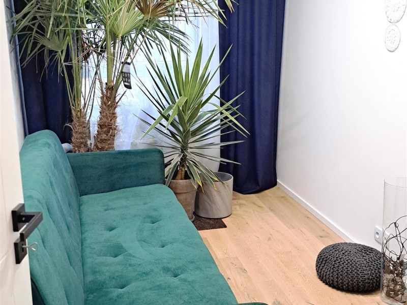 W mieszkaniu pozostają wszystkie meble, w tym 3 metrowy narożnik z funkcją spania w salonie, w jednej sypialni łóżko małżeńskie, w drugiej kanapa, a w trzeciej gabinet.