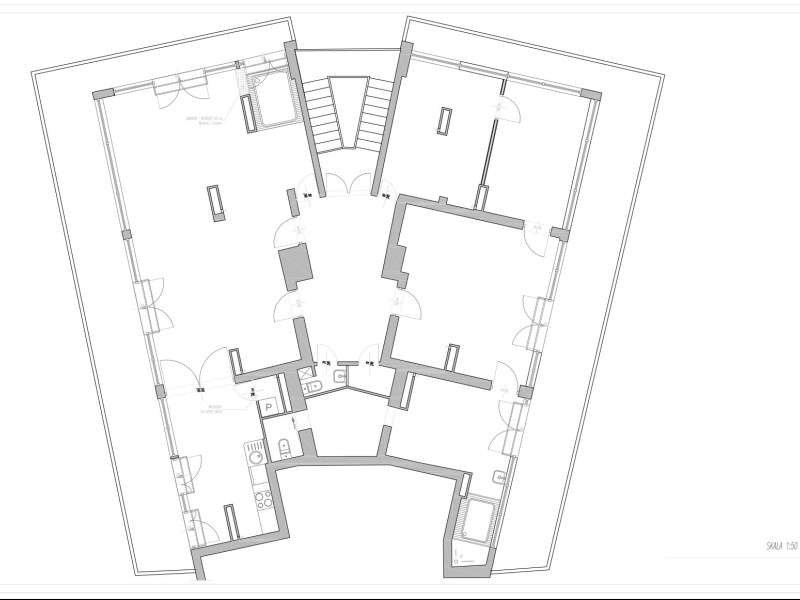 Fasada budynku nawiązuje stylistyką do najlepszych wzorów z okresu twórczości Le Corbusiera i późniejszych awangardowych architektów. Z podobnym smakiem i stylem zaprojektowane są pomieszczenia Penthouse przy wystroju których zastosowaliśmy najwyższej klasy materiały kamień naturalny, drewno.