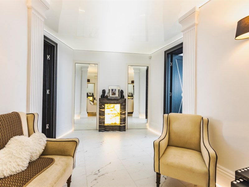 1. Przestronny i reprezentacyjny hall główny z marmurowym kominkiem