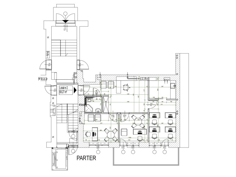 Znajduje się na parterze od cichej ulicy w zrewitalizowanej Kamienicy z 1936 r.